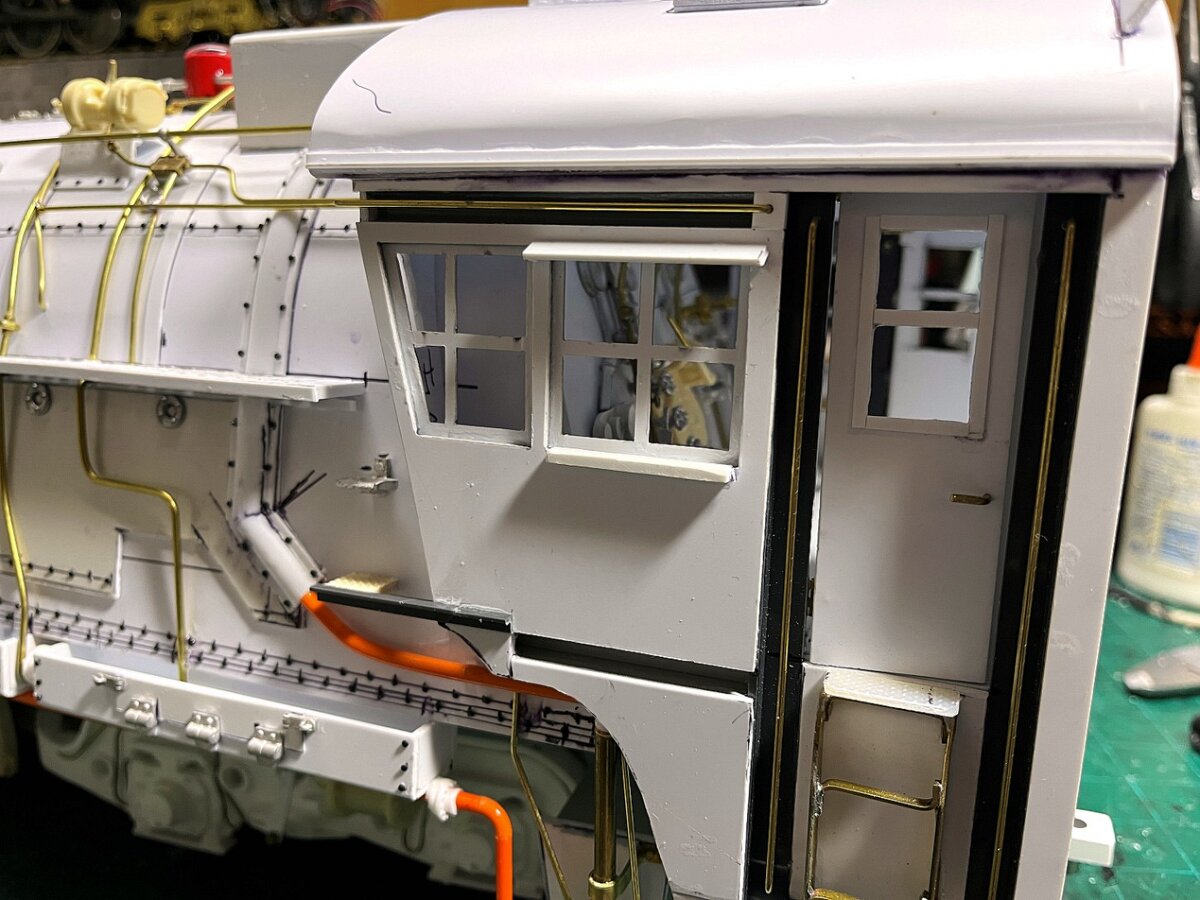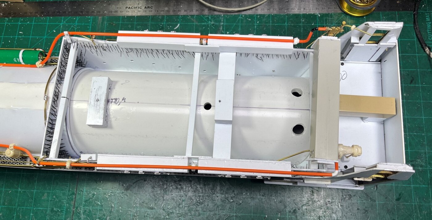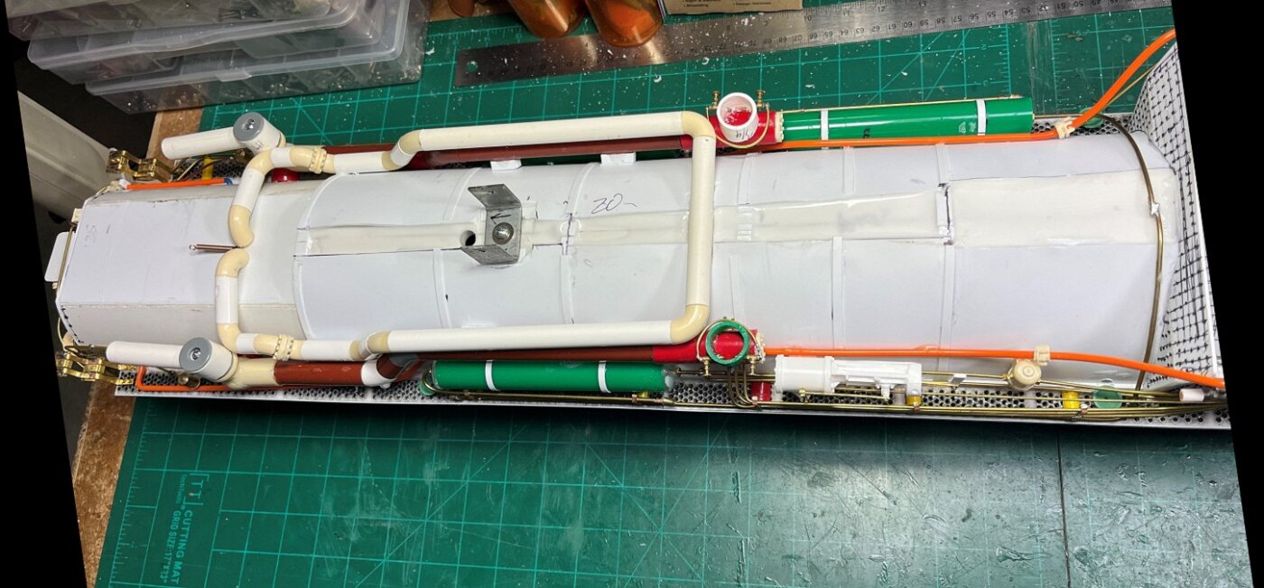 Work is done underside of the boiler, more pipes to run. Then the running gear gets some work. And the backhead in the cab is installed... lots of pipes and valves.